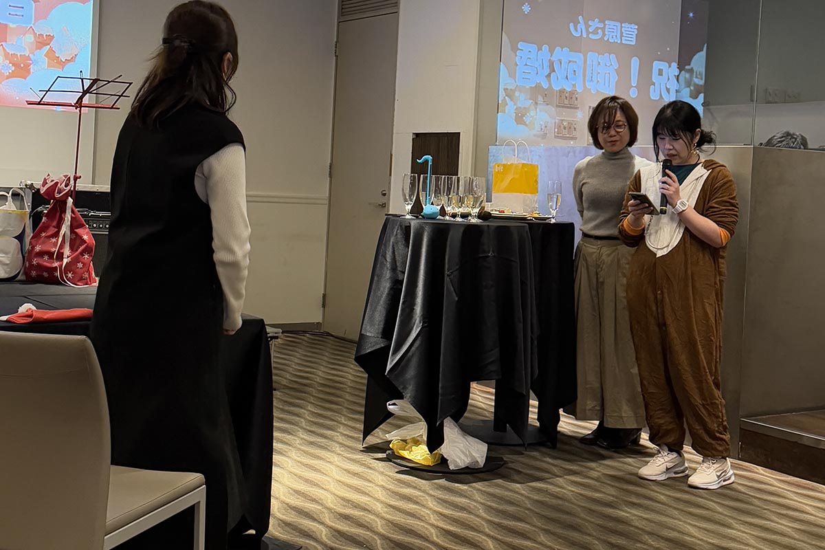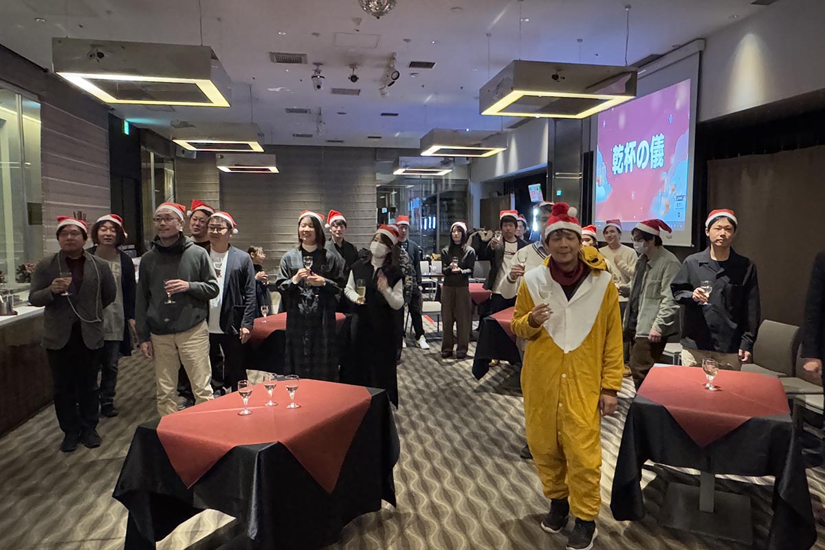 年末恒例の忘年会です。今年は銀座のイベントスペースにて開催です。年々派手になっているような気がします。