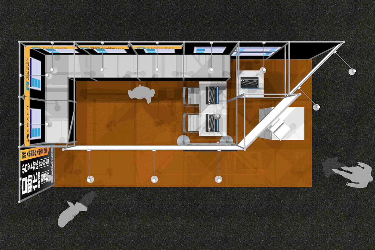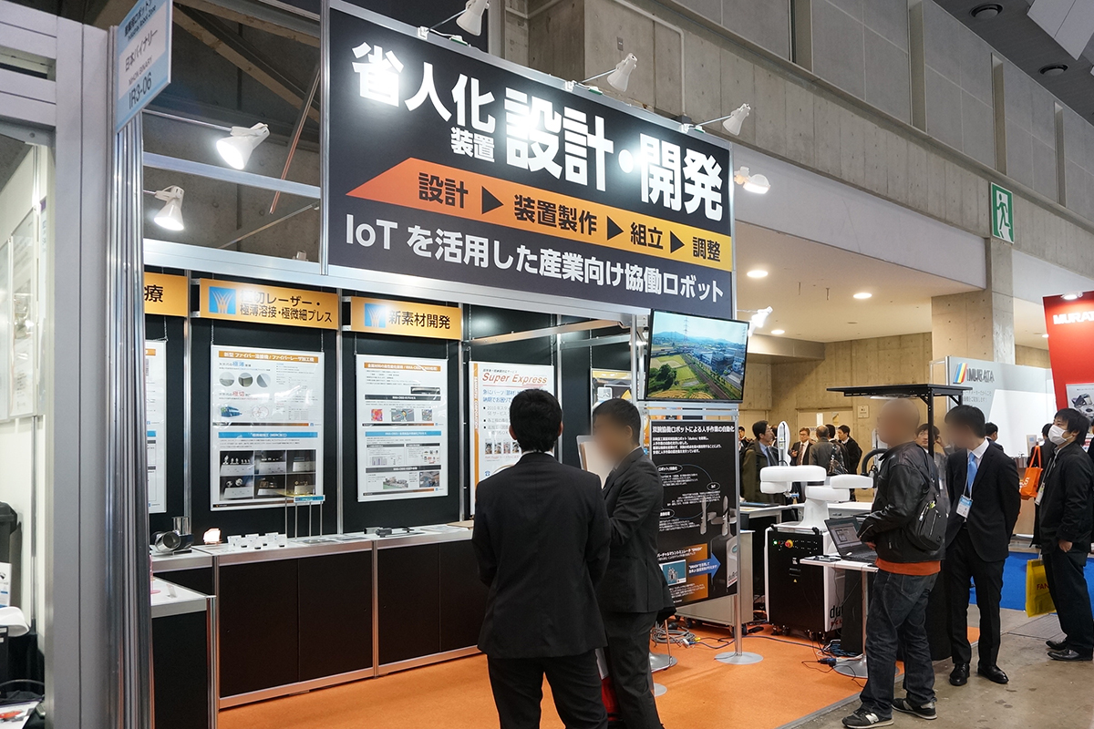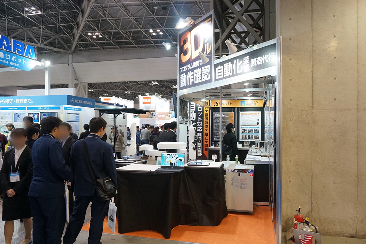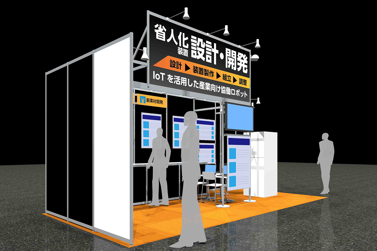 出展製品としてやや大型のロボット装置があり、これは最も重要な展示物となりますのでブース内で最も目立つブース角の位置に配置しました。