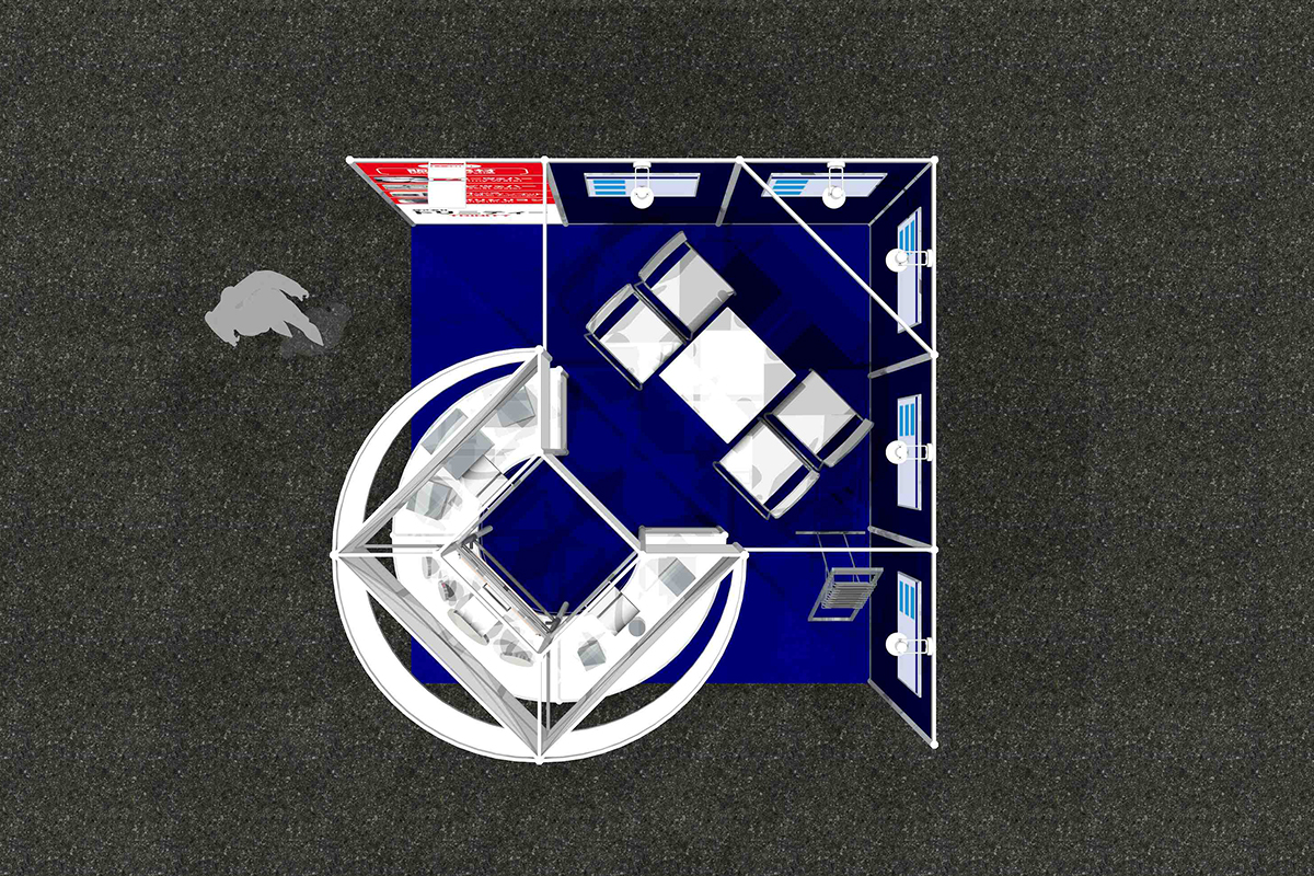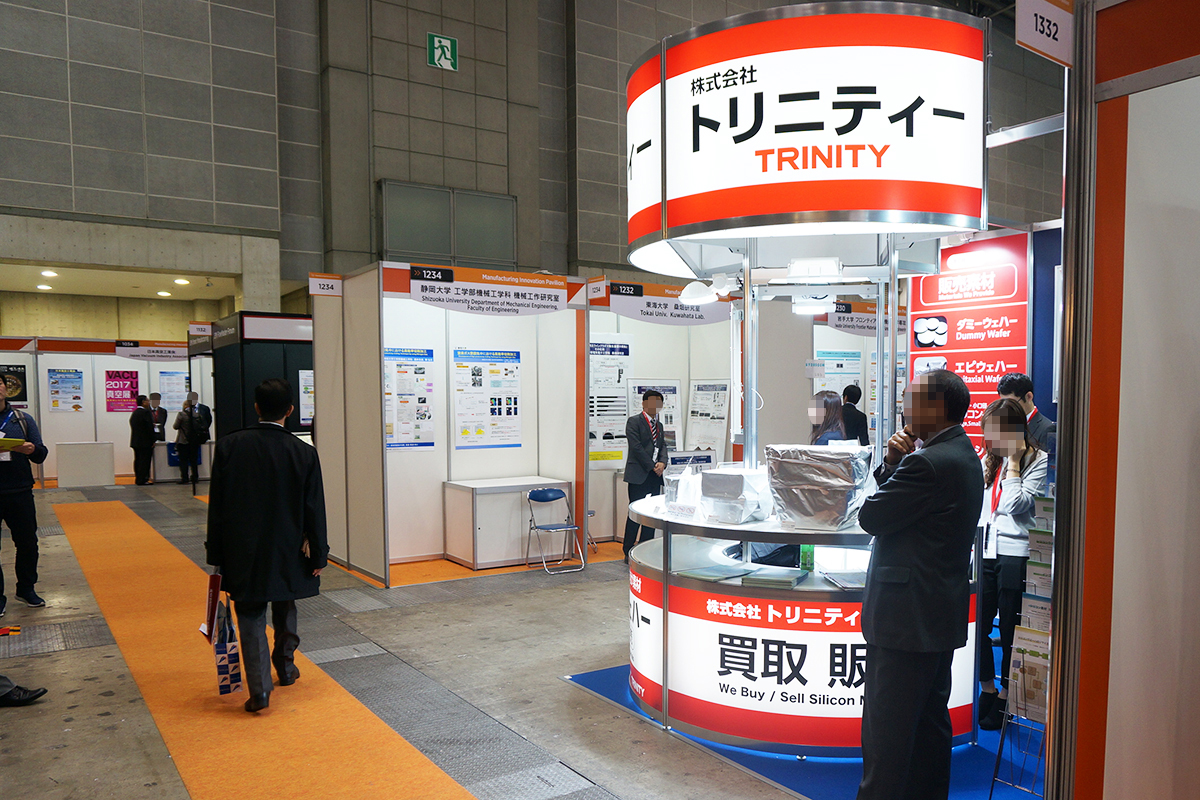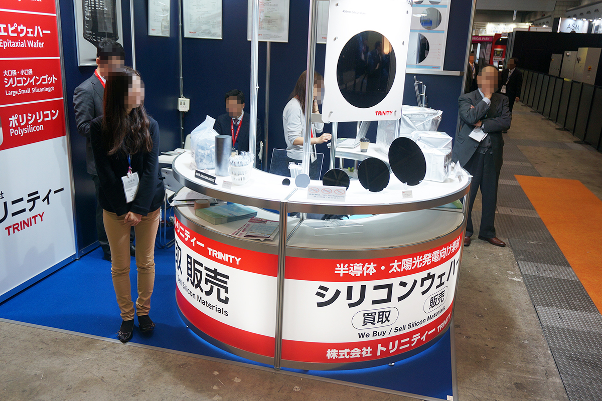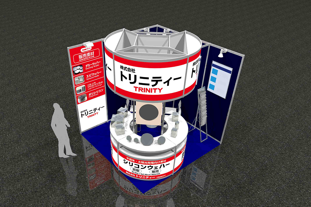 看板の向きはブース後方からきた来場者様にもシリコン材料の「買取販売」をしていることを理解してもらうために見やすく配置しました。