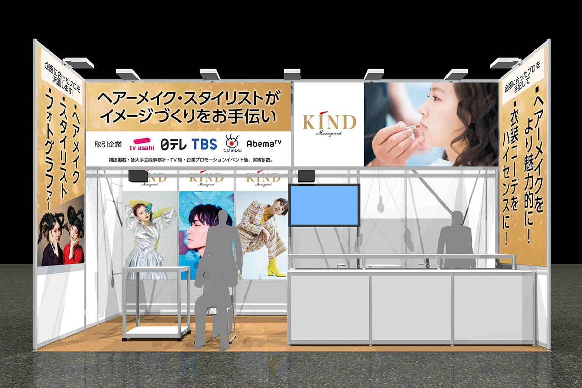 出展サービスは「ヘアメイク・スタイリスト・フォトグラファーが撮影現場で技術サポートする」です。