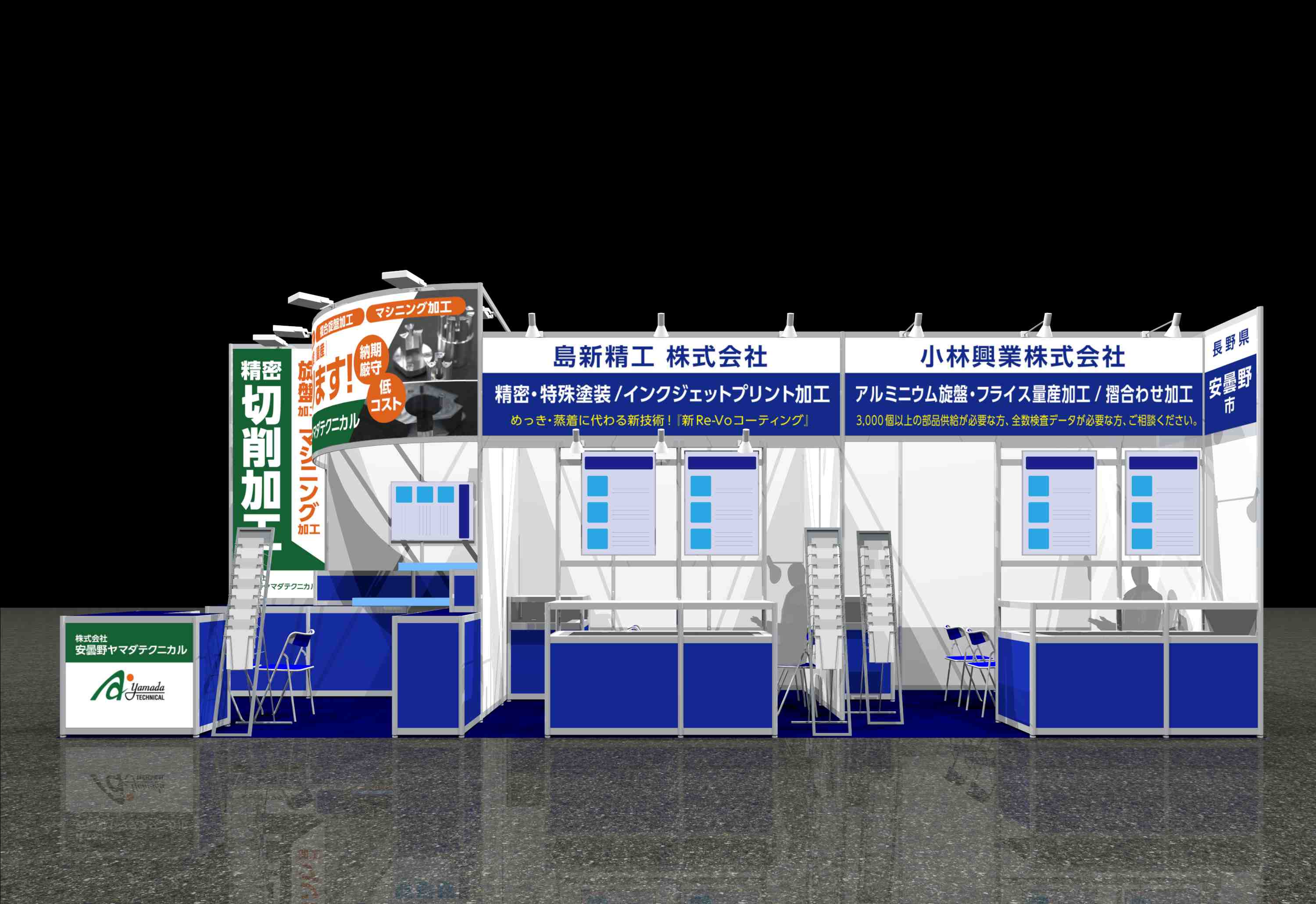 今回のブースは長野県安曇野市の商工会様が基軸となり、同市の製造業企業を募って出展されたブースとなり、「パビリオンブース」となります。