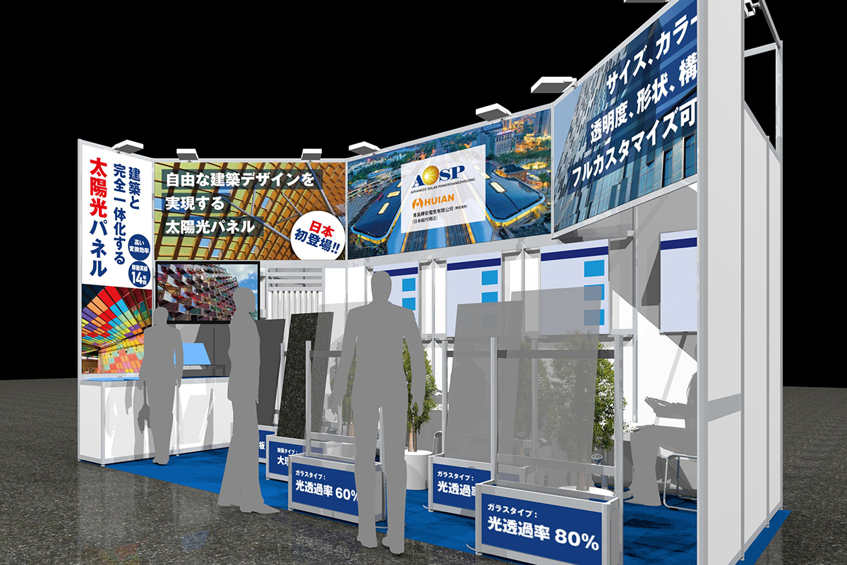こちらのブースでは、太陽光パネルを展示するために特製の展示台を作成・設置しました。
