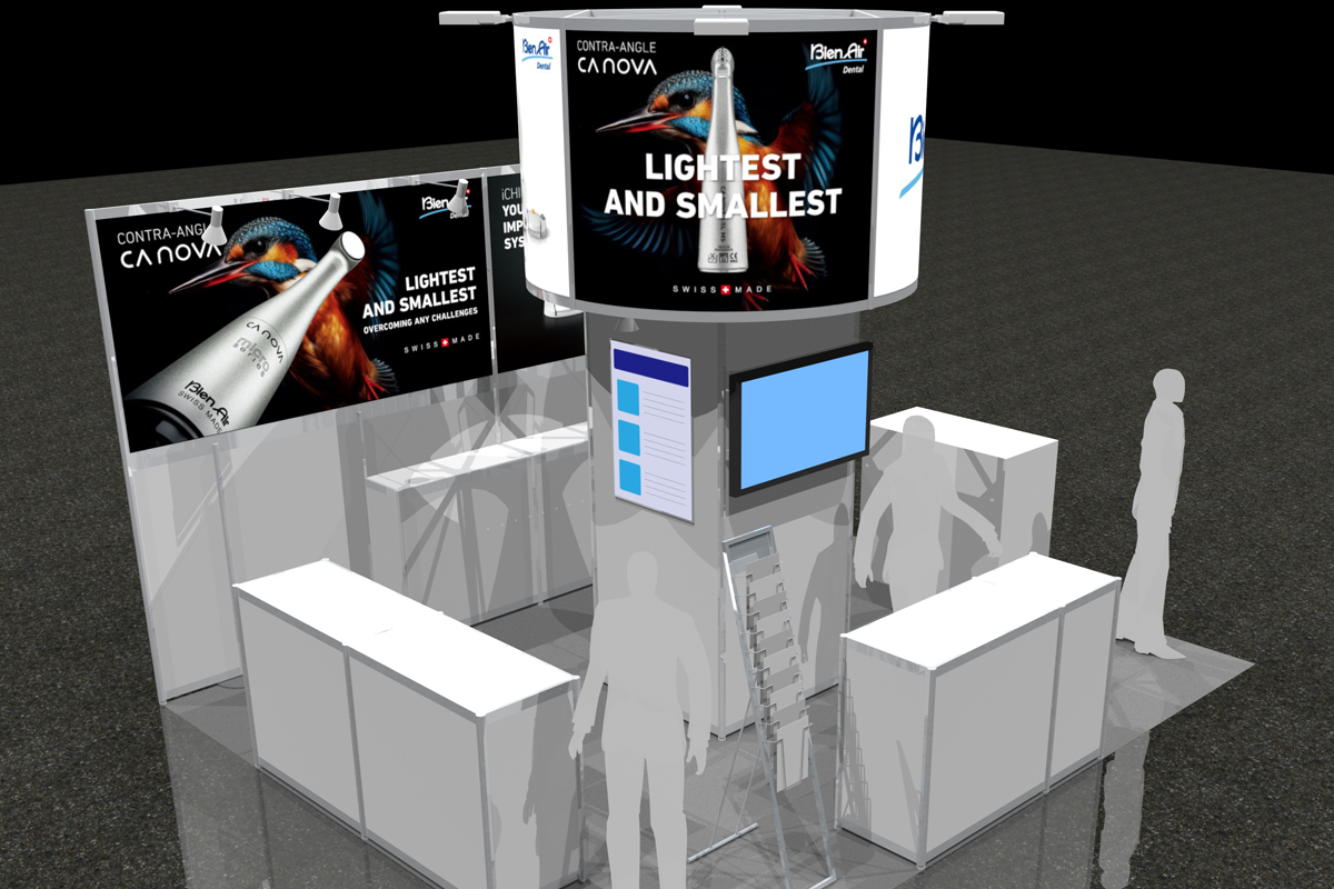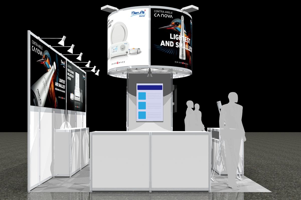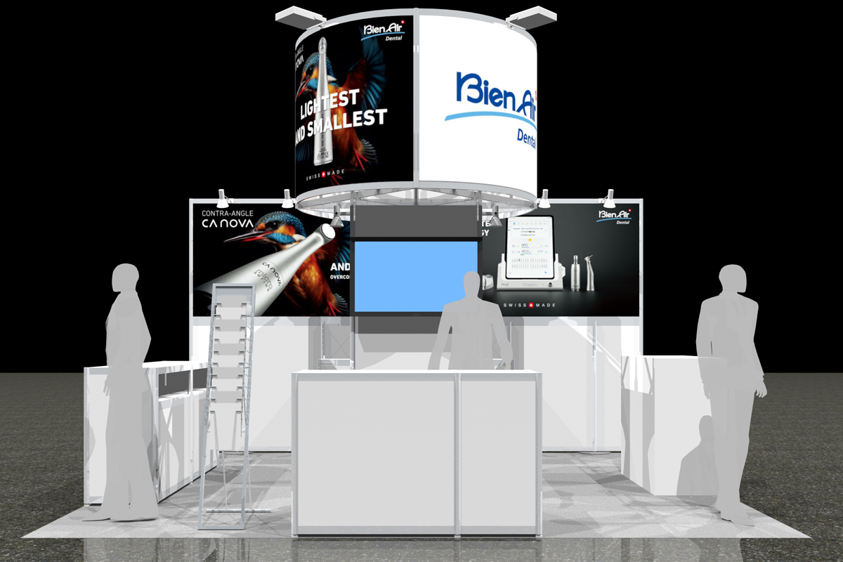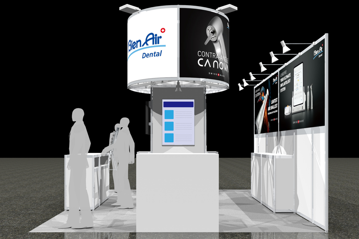 九州デンタルショーへご出展されたお客様のブースです。デンタルショーとは歯科医療に関わる最新の機器や材料、ITソリューション、サービスが一堂に集結する展示会となります。