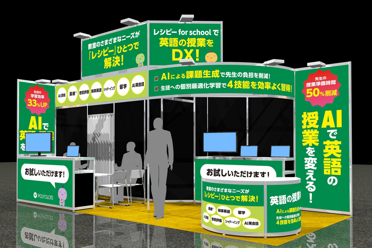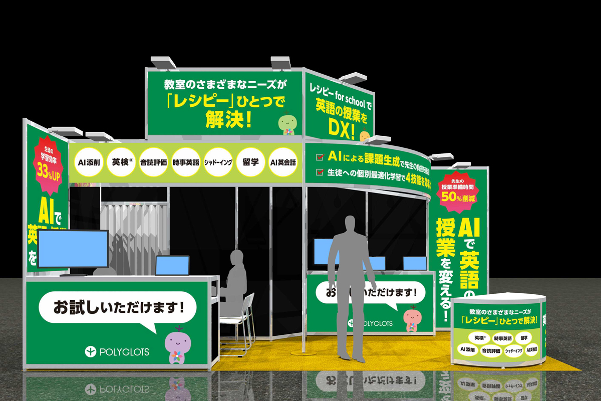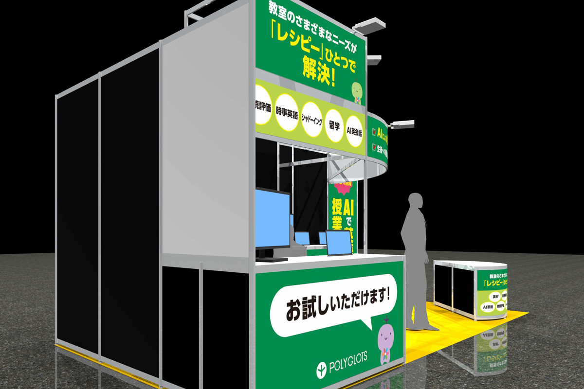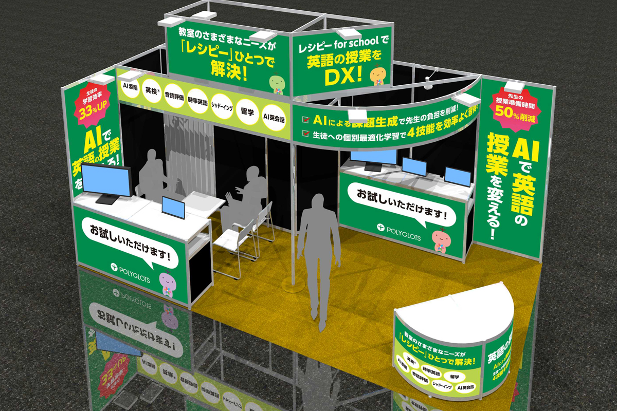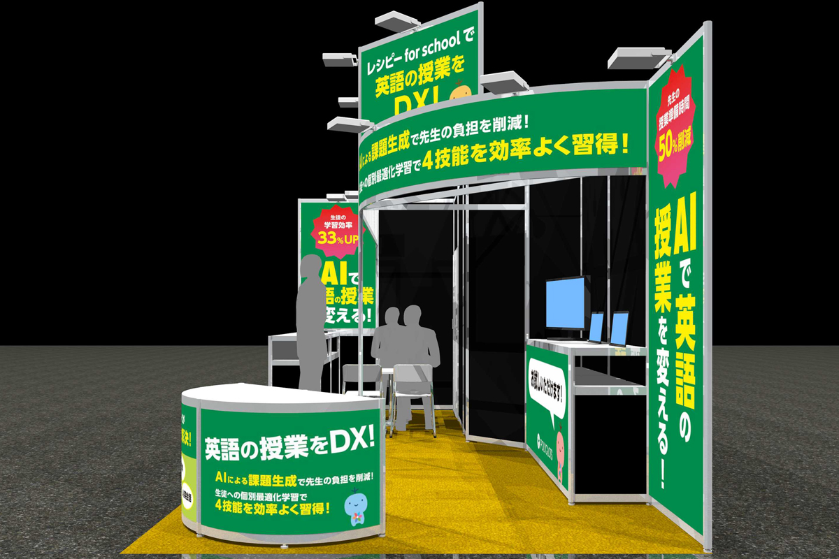 2025年8月に開催された「関西教育ICT展」に出展されたお客様のブースです。出展社様のブースの大きさは幅6m×奥行3mで通路が2面している角地の小間位置になります。