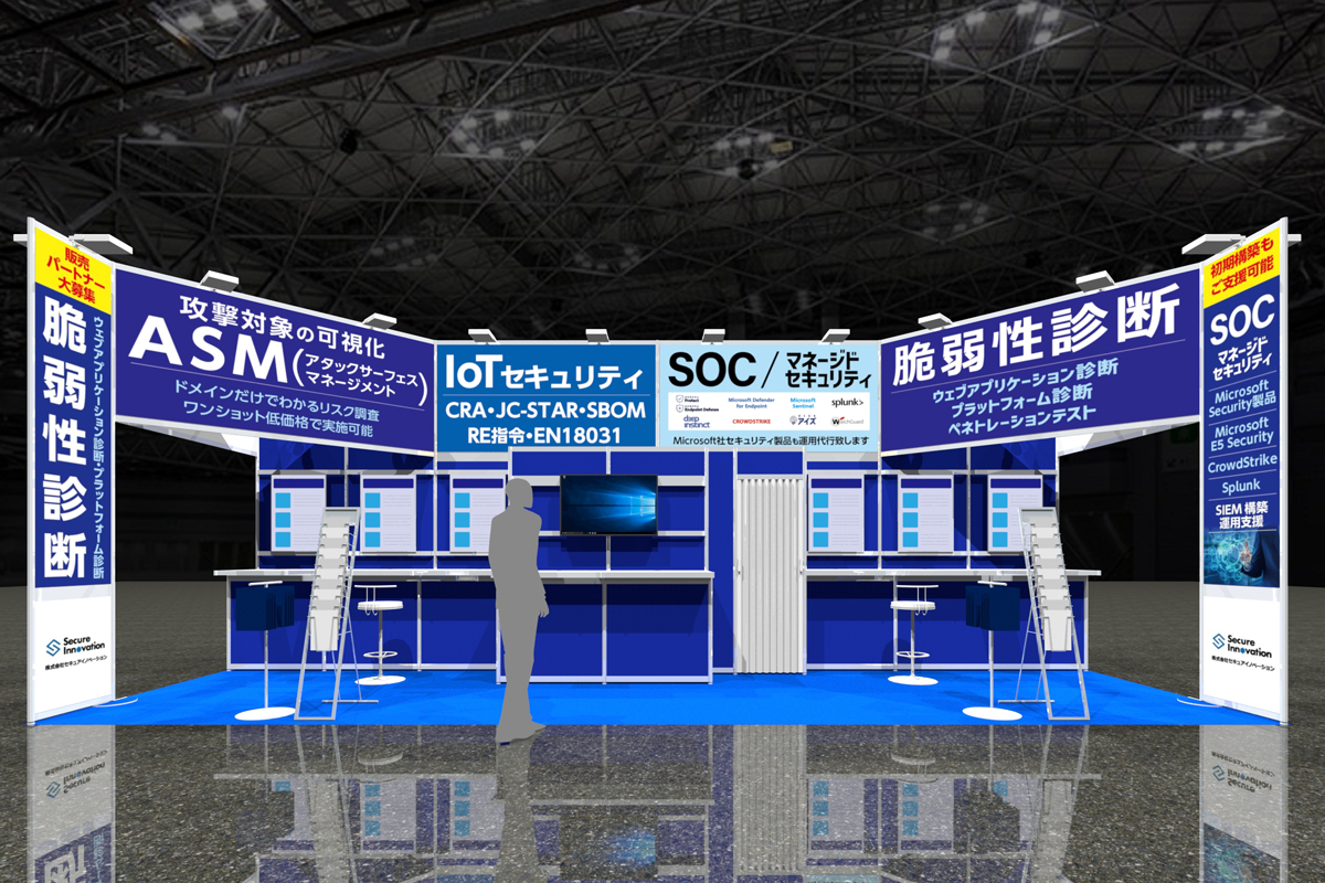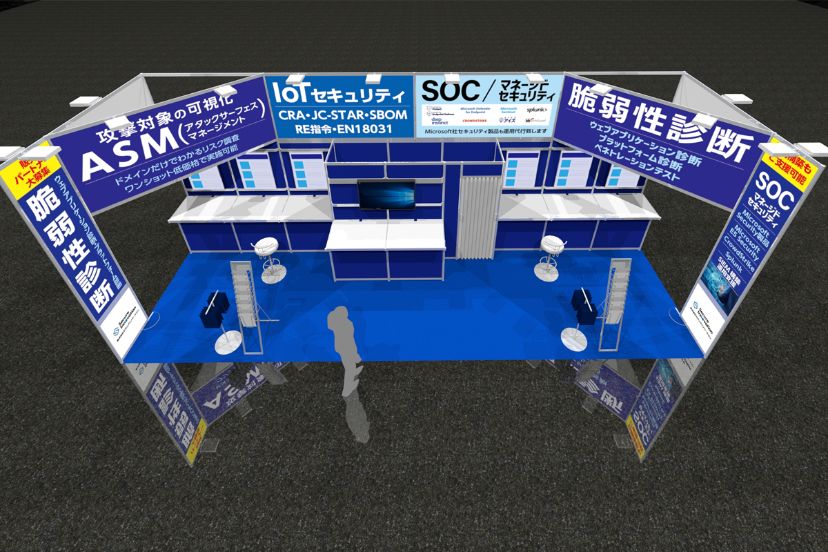 出店製品は、セキュリティ脆弱性診断やSOCサービス、「IoT」セキュリティ情報ログ管理、「ASM」アタックサーフェスマネージメントなど、総合的なサイバーセキュリティ関連が商材となります。様々な情報セキュリティサービスを沖縄から日本全国、アジアに向けて情報セキュリティサービスを展開していきます。