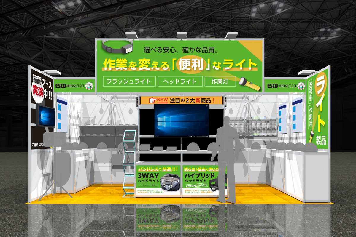 ご商材は主に多種類のライト製品で、「自社のライト類を鉄道業界に広めたい」という目的から、新規開拓のため鉄道技術展へ初出展されたお客様です。