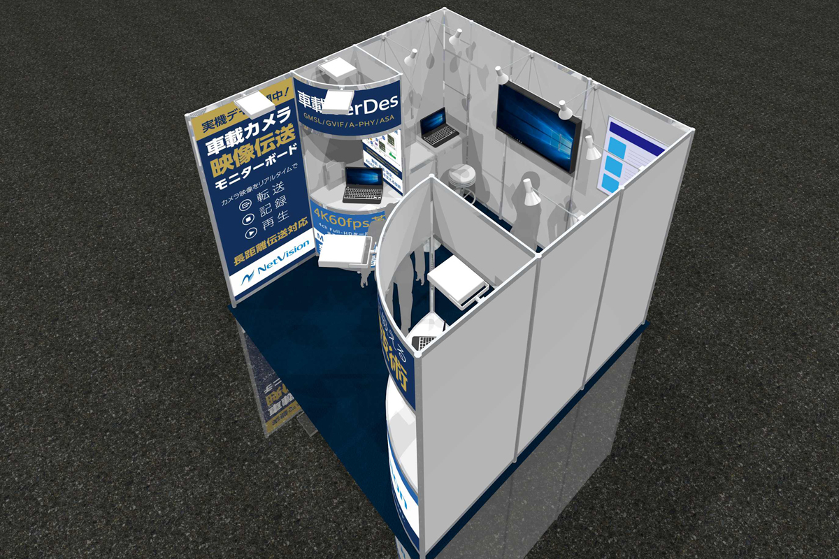 2025年12月に開催された「国際画像機器展」のブース事例です。ブースの大きさは横幅3m × 奥行3mで、1つの通路に面した「1面開放」の小間位置となります。「国際画像機器展」は、マシンビジョン(画像処理)およびロボットビジョン分野において、国内トップクラスの技術が一堂に会する専門展示会です。産業用カメラをはじめ、AI、ディープラーニング、3D技術、計測、医療、セキュリティ分野まで、多岐にわたる最新ソリューションが紹介され、技術者・開発者が情報収集や課題解決、商談を目的に来場します。