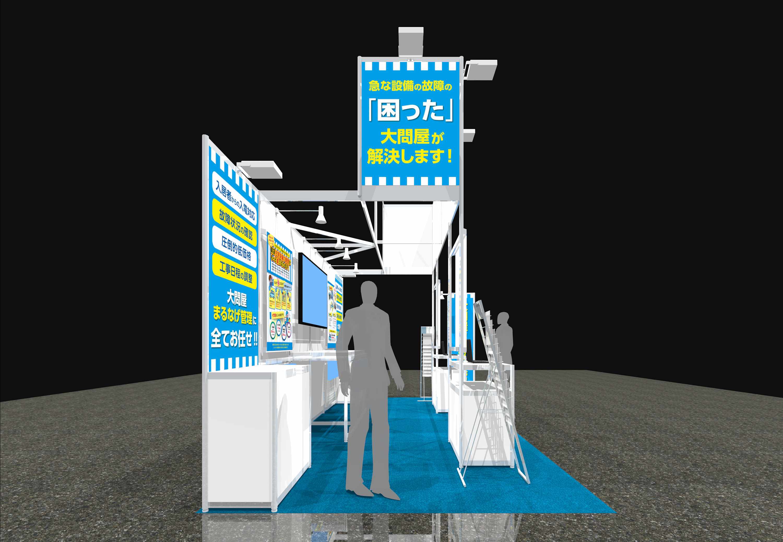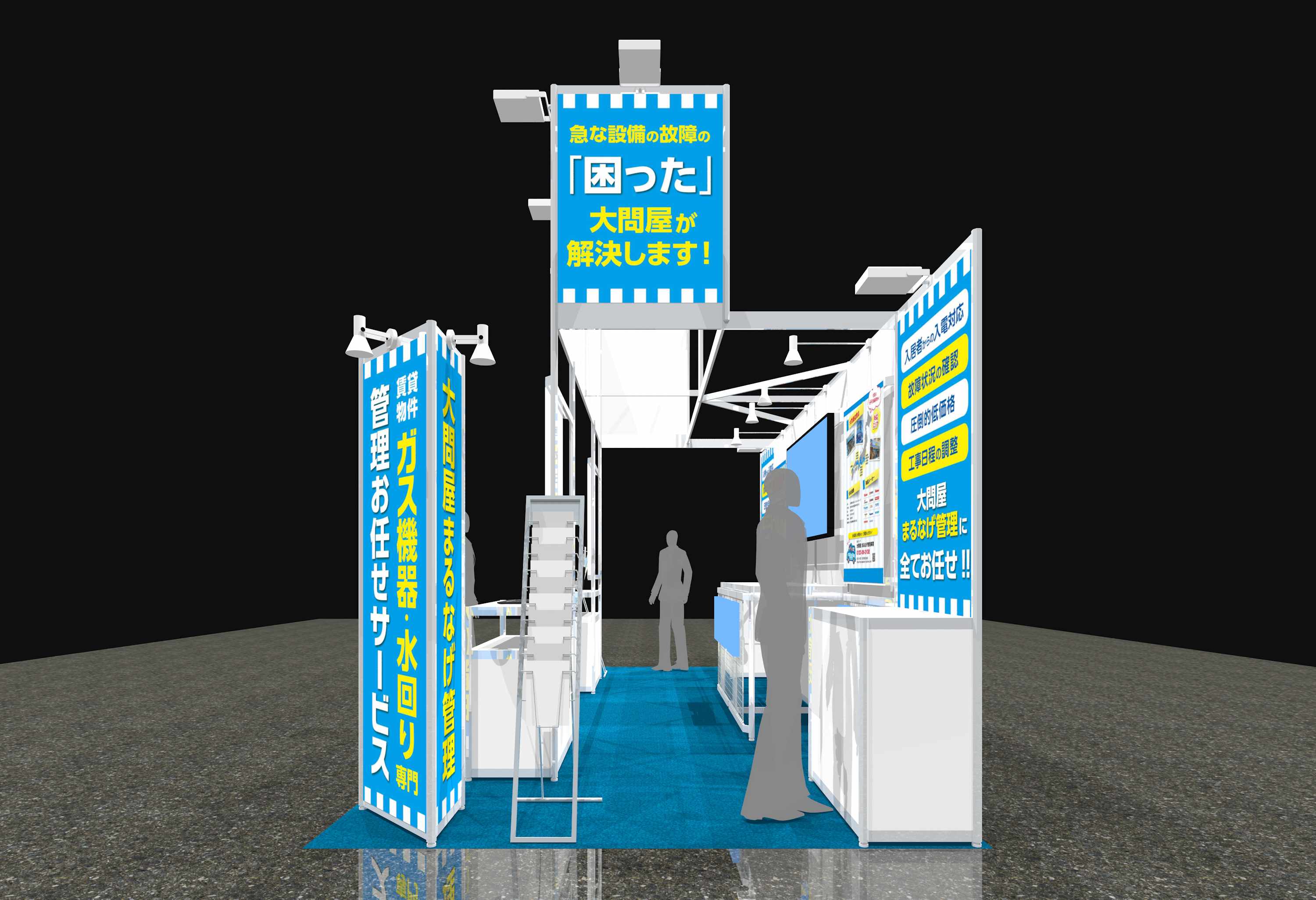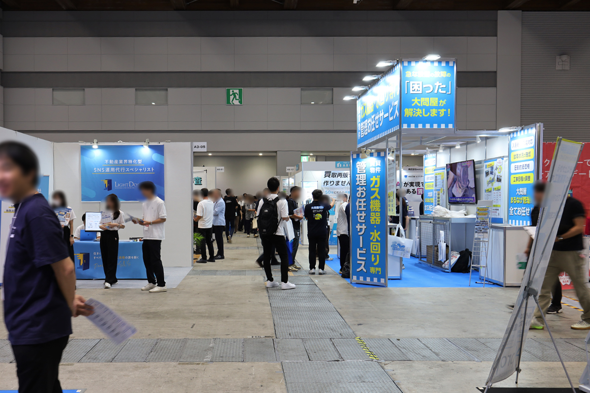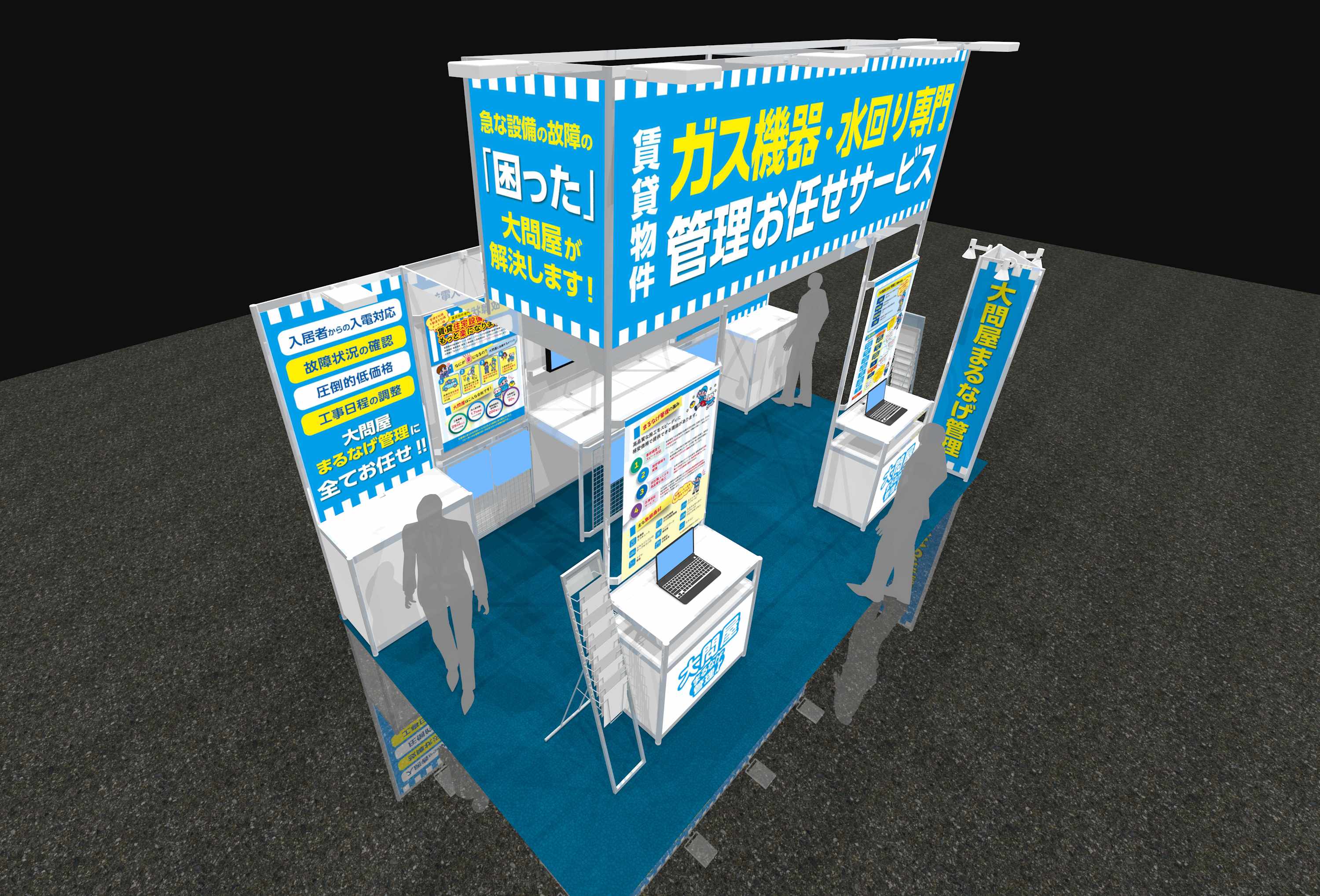 ご出展社様の商材は、賃貸物件のガス機器や水回りに特化した管理代行サービス「大問屋まるなげ管理」です。管理会社・不動産会社・オーナー様を対象に、入居者からの電話対応や故障状況の確認、工事日程の調整までを低価格で一括して任せられる点が大きな特長です。