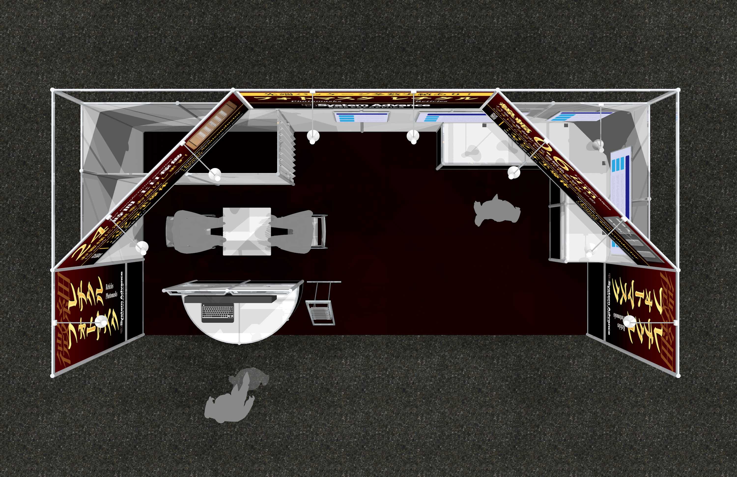 当社では、小間の配置を考慮した最適なデザインをご提案いたします。デザイン費用もお見積りに含まれておりますので、すべてお任せいただけます。会場の条件や開放面、配置に応じた効果的な看板表現を得意としておりますので、展示会での集客を重視されるご出展社様は、ぜひお気軽にご相談ください。