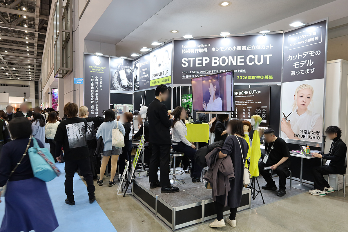 世界初の特許取得済みの小顔補正立体カット(ステップボーンカット)の無料体験&デモンストレーションということで、比較的不利な場所にも関わらず、体験の行列が出来る盛況ぶりだったそうです!