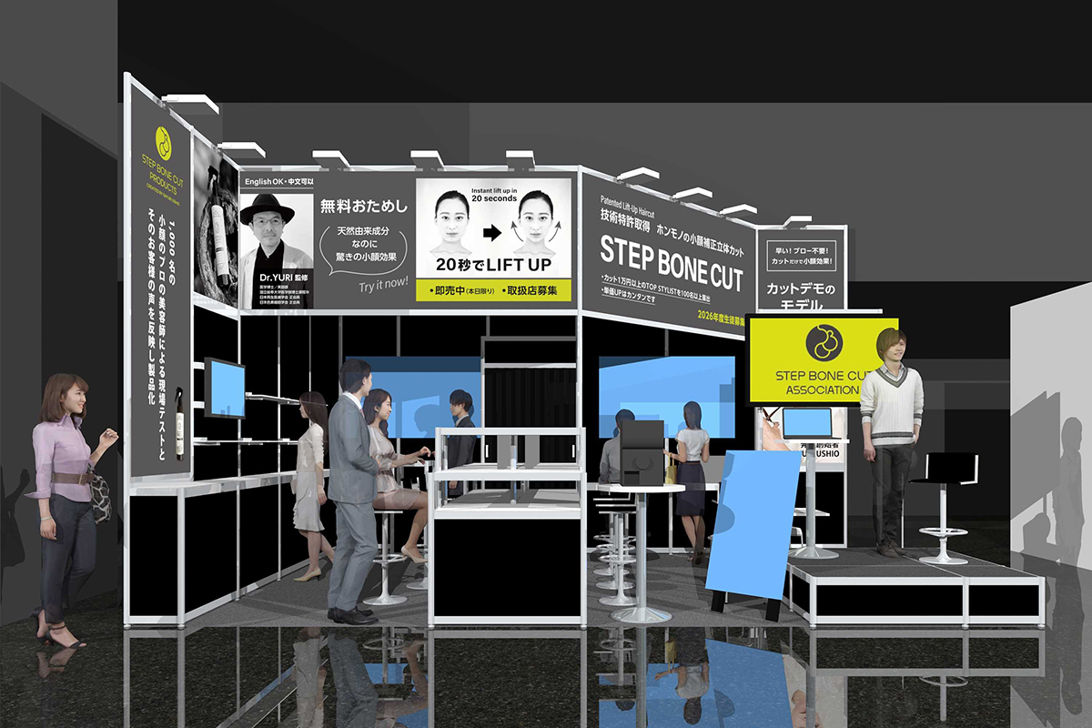 たった20秒で小顔を体感できる化粧水や、特許取得済みの小顔補正立体カットなど独自の技術・商品が特徴で、当社とは2年前のビューティーワールドジャパンからのお付き合いです。