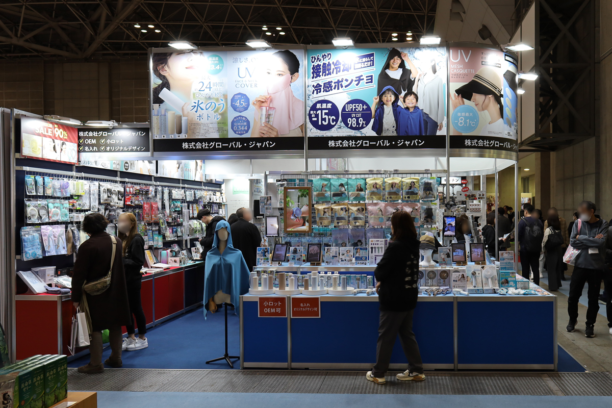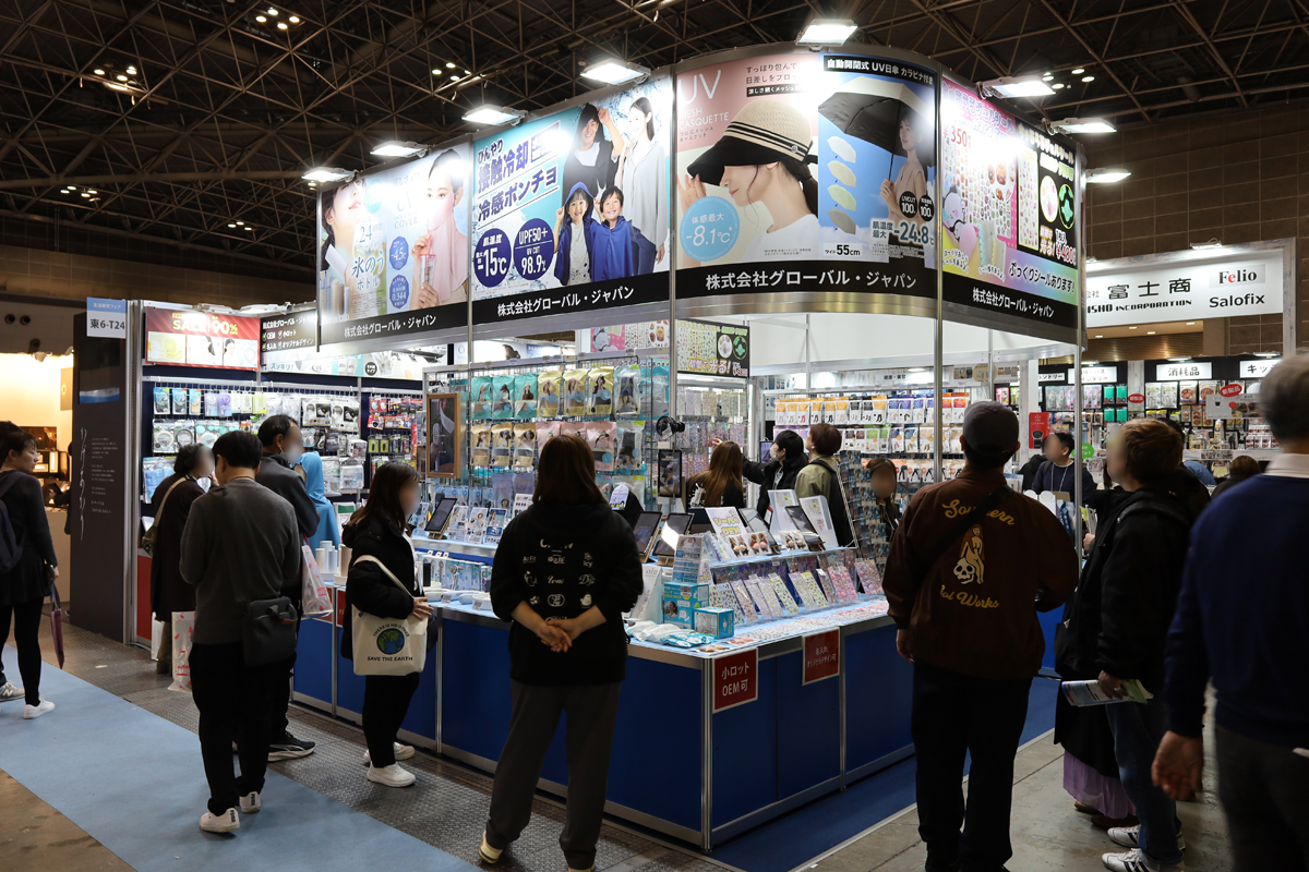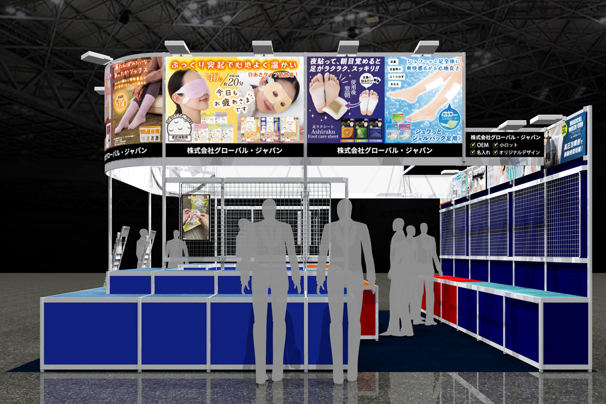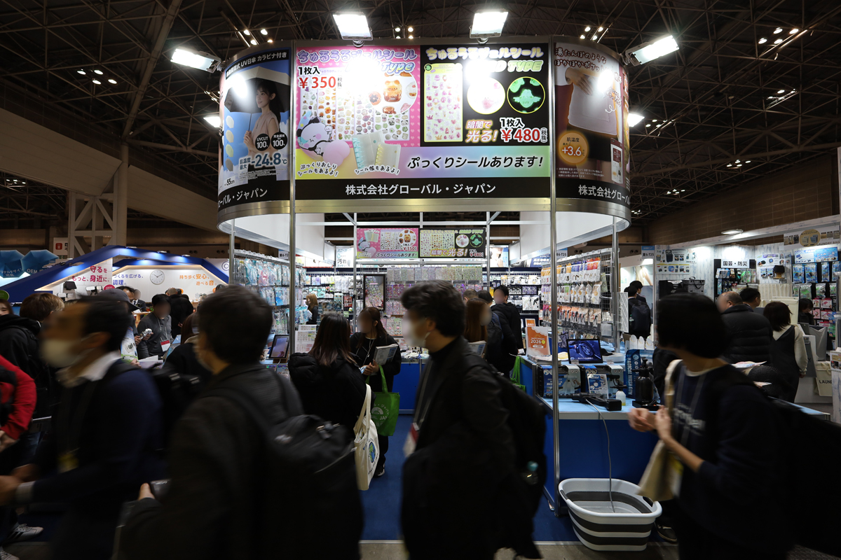 ブースの大きさは幅6m×奥行6mで3つの通路に面している「3面開放」という小間位置です。2026年2月に開催された「東京インターナショナル・ギフト・ショー春」のブースです。