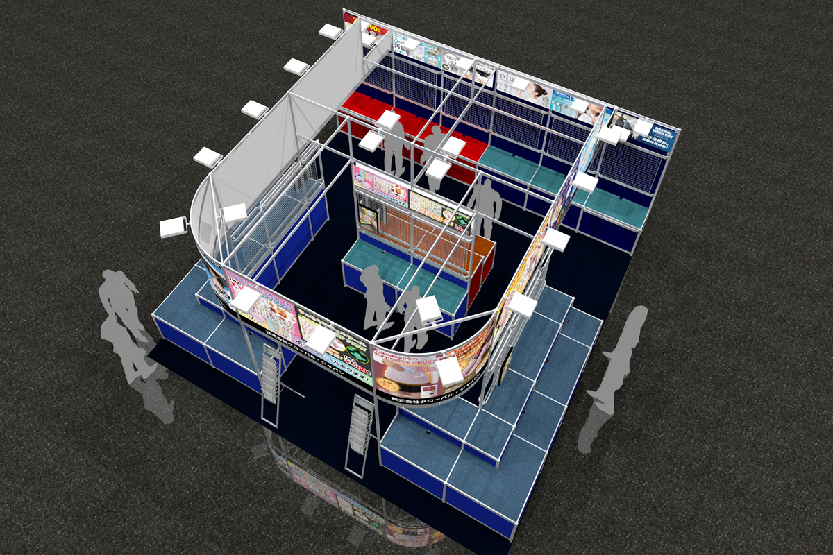 弊社では来場者に出展社様の商材を「知ってもらう・わかってもらう」ため「商材を訴求するブース」をコンセプトに装飾を行っています。