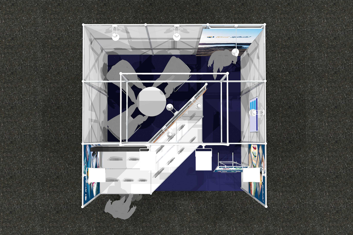 また、通路側に展示台を配置し、来場者が自然と足を止めやすいレイアウトとしています。
